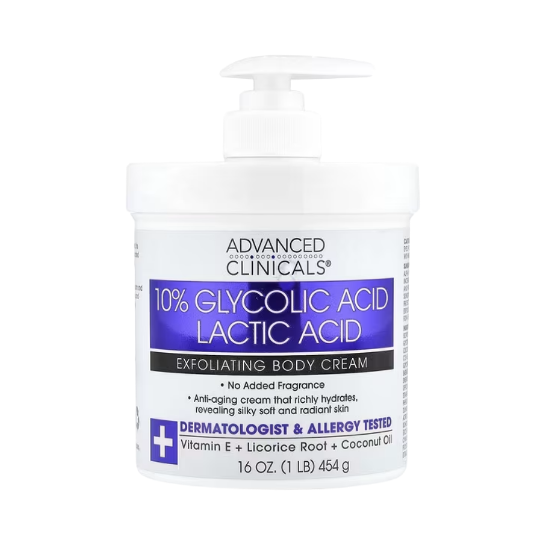 Advanced Clinicals 10% Glycolic + Lactic Acid Body Cream 454g