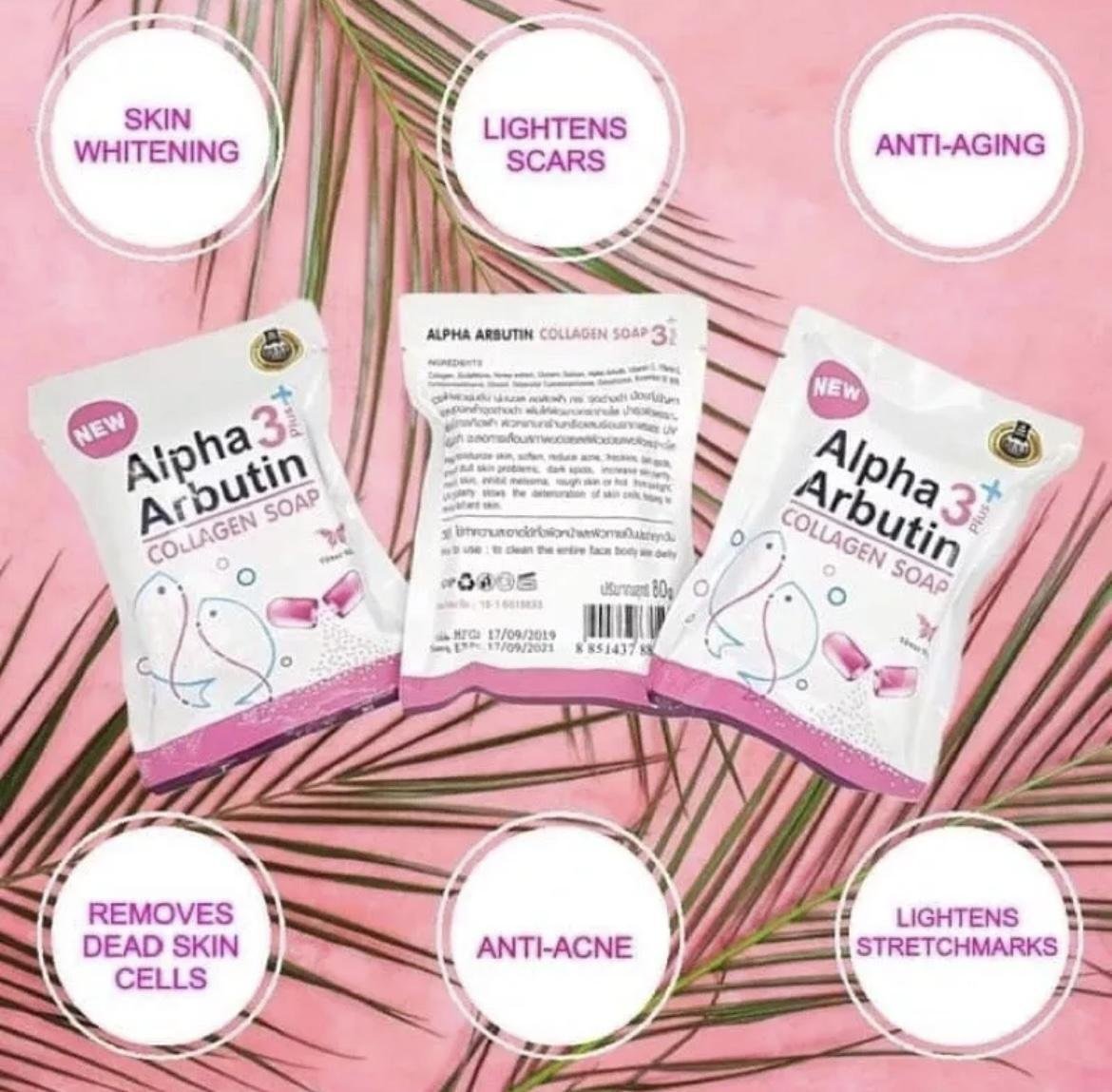 Alpha arbutin effectively lightens and reduces UV induced pigmentation and free radicals, without increasing sun sensitivity. It fades discoloration caused by inflammation and environmental stressors while evening skin tone. It also addresses glycation, sugar-induced skin sallowness and loss of elasticity. Alpha 3 Plus Arbutin Soap whitening body soap made from natural extracts with added vitamin C, eliminates skin problems, reduces stretch marks and acne scars, improves whiteness up to 3 levels. High-quality extracts of various fruits, arbutin and vitamin C provide skin nutrition, whitening and natural radiance.