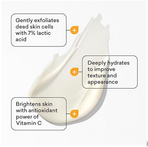 • Reveal your radiance with Vitamin C + 7% Lactic Acid, a brightening blend that exfoliates, renews, and reveals your ultimate glow.