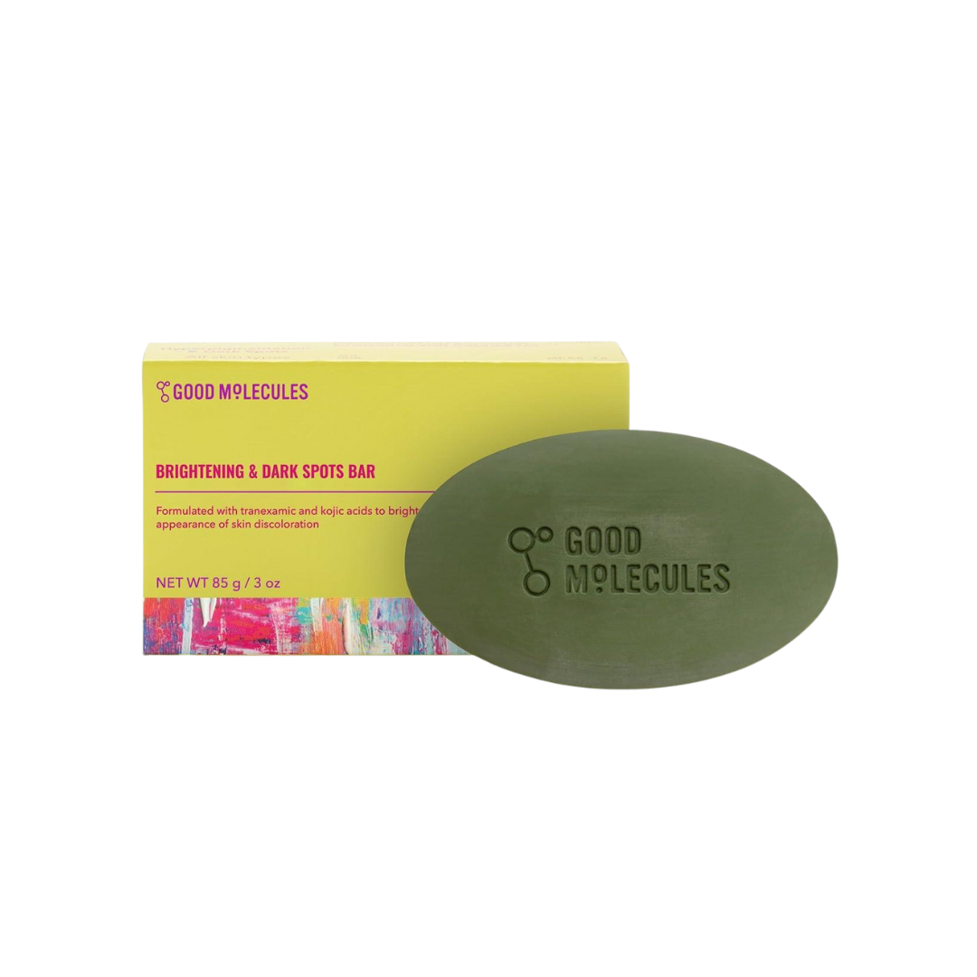 Experience brighter, more even-toned skin with the Good Molecules Brightening & Dark Spots Bar. Specially crafted for those seeking a comfortable, soap-free cleanse, this high foaming, gentle cleansing bar removes impurities from both face and body while working to improve the appearance of discoloration. Made with a pH-balanced blend of skin-brightening and nourishing ingredients, the Brightening Dark Spots Bar supports a fresh, radiant complexion with each use. Powerful Ingredients for Clear, Balanced Skin The Good Molecules Brightening Spots Bar is powered by 2% Tranexamic Acid and 2% Kojic Acid to encourage a reduction in the appearance of dark spots, sun spots, and post-acne marks. Suitable for all skin types, the Good Molecules Brightening & Dark Spots Bar is gentle enough for daily use on both the face and body. Wet the bar, create a creamy lather, and massage onto skin, avoiding the eye area. How to use: Rinse thoroughly and pat dry for a fresh, glowing look. This bar is vegan, cruelty-free, and free from fragrance, and harmful chemicals, making it a mindful addition to any skincare routine. Reveal a brighter, more radiant complexion every day with Good Molecules.