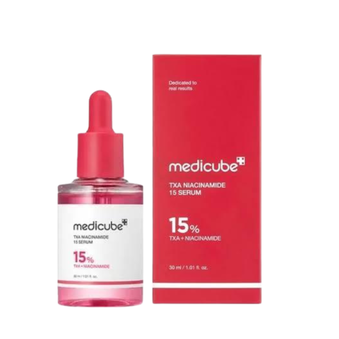 Reveal Luminous, Even-Toned Skin with Medicube TXA Niacinamide 15 Serum. Formulated with 15% Niacinamideand Tranexamic Acid (TXA), this powerful serum targets dark spots, uneven skin tone, and dullness while reinforcing the skin barrier. Designed for hyperpigmentation-prone and sensitive skin, it helps brighten, smooth, and hydrate for a visibly radiant complexion.