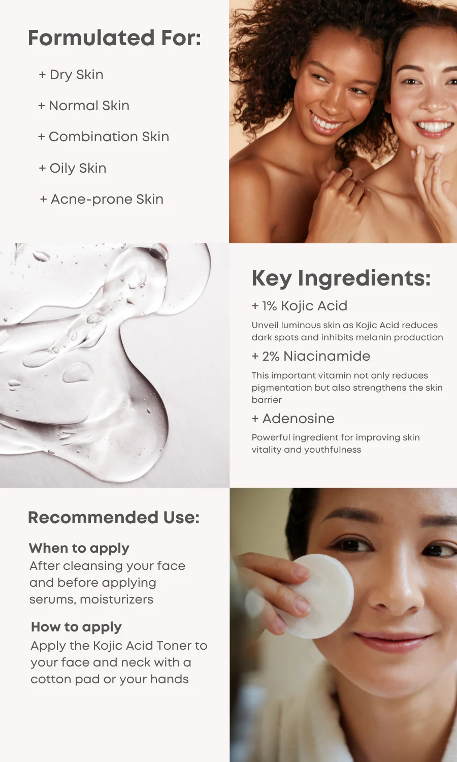 Achieve a clear, luminous skin tone with our Advanced Kojic Acid Toner, perfect for all skin types. Transform your skincare routine and let your skin glow like never before.