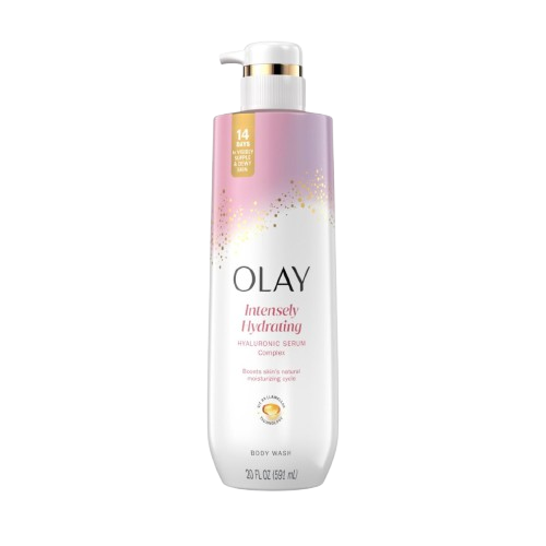Vitamin B3 Complex. Olay’s proprietary body wash formula, made with Vitamin B3 Complex, deeply hydrates to nourish, replenishing skin’s moisture barrier. Hyaluronic Acid (HA). Sometimes called a moisture magnet, it is known for its capacity in retaining water. Olay body wash with Hyaluronic Acid locks in moisture to keep skin moisturized throughout the day without feeling heavy.
